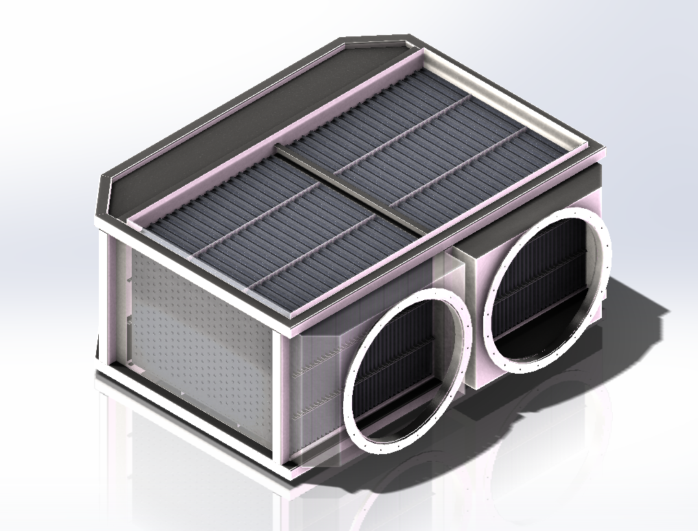 波紋板束的傳熱模塊,采用激光焊、電阻焊或專用膠密膠進行組裝和密封,漏風率為0。低阻力和不漏風的換熱器也減小了風機電耗。