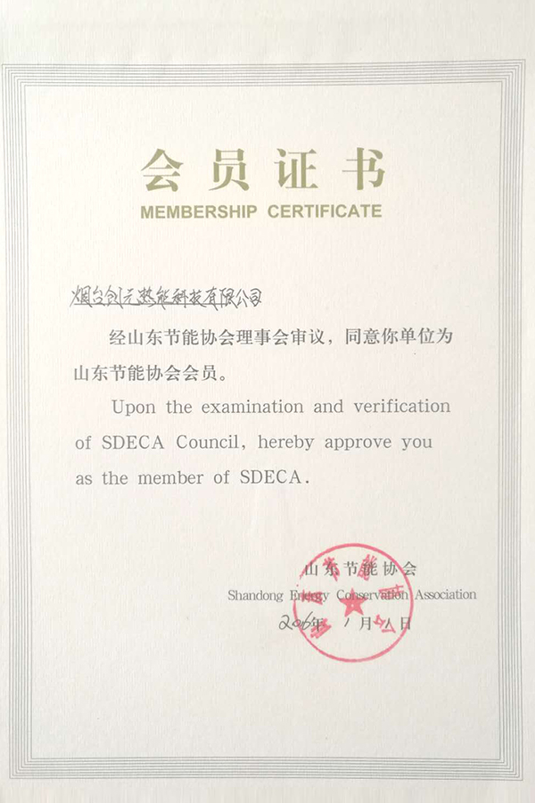 2016年,煙臺創元熱能科技有限公司經山東節能協會理事會審議,成為山東節能協會會員;